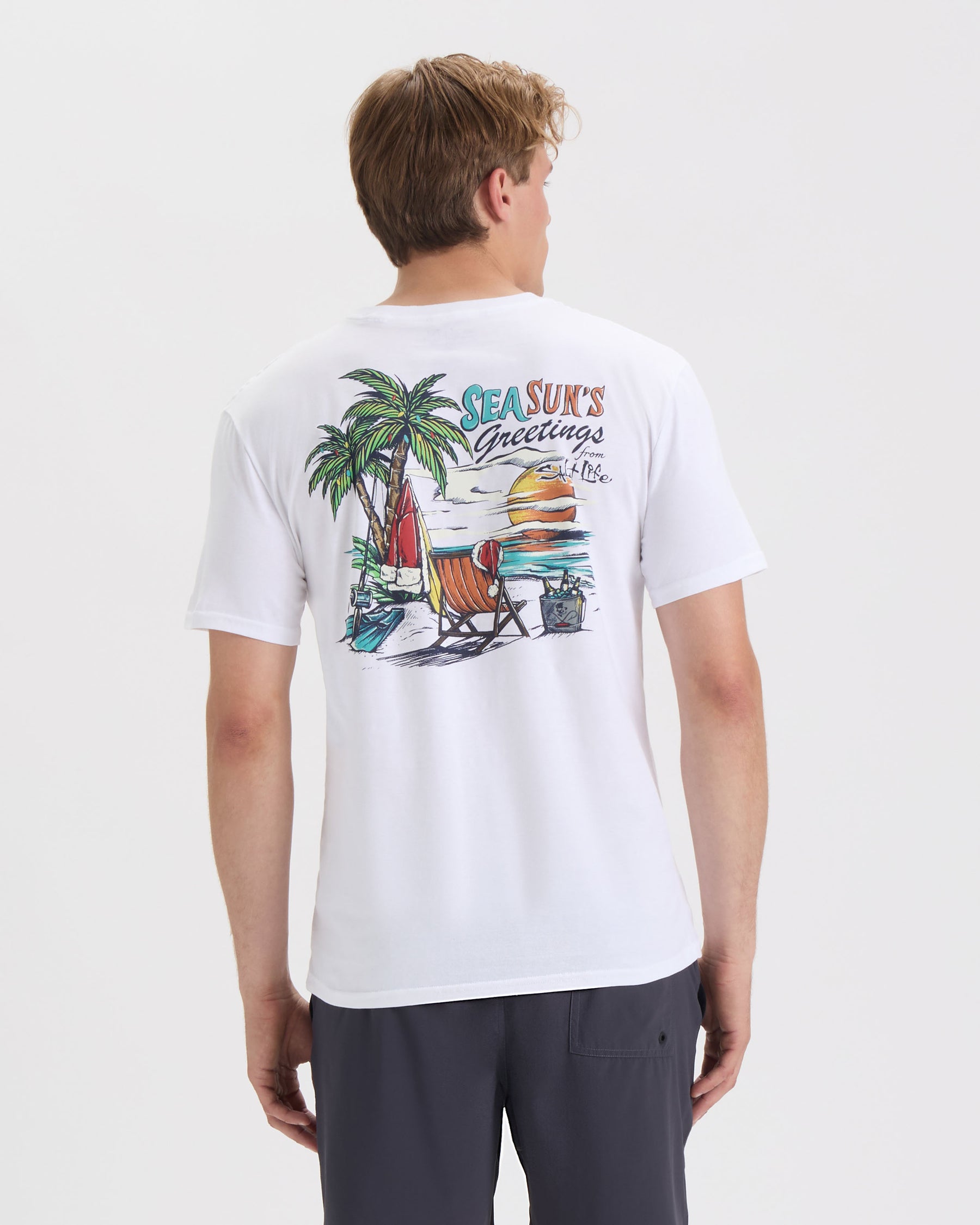 The Salt Life Men’s Sea Suns Greeting Short Sleeve Tee pairs a classic crew neck with a regular fit, easy everyday wear. Featuring a Salt Life logo on the chest and a vibrant Sea Suns Greeting design on the back, it brings laid-back coastal style to your wardrobe all year round.