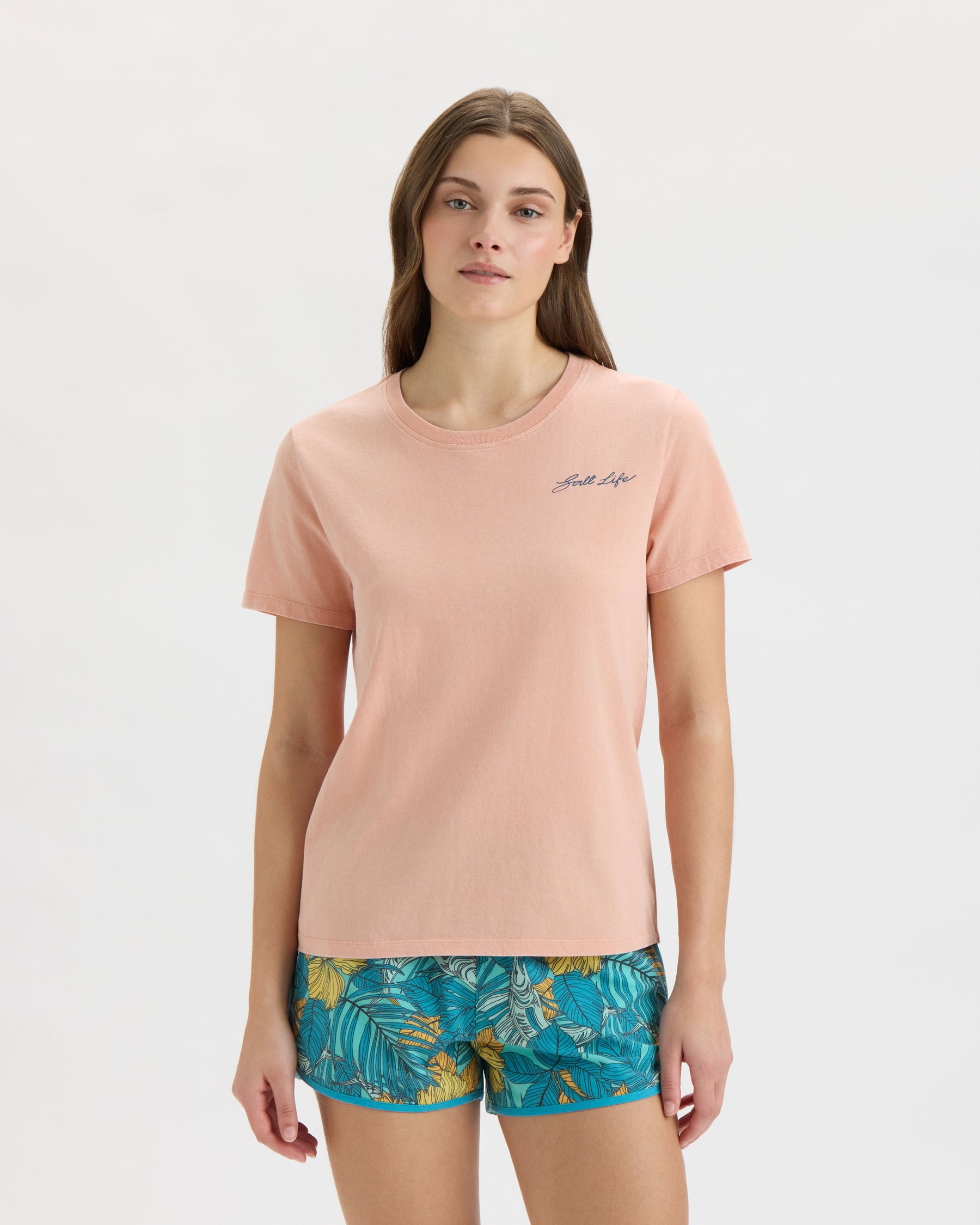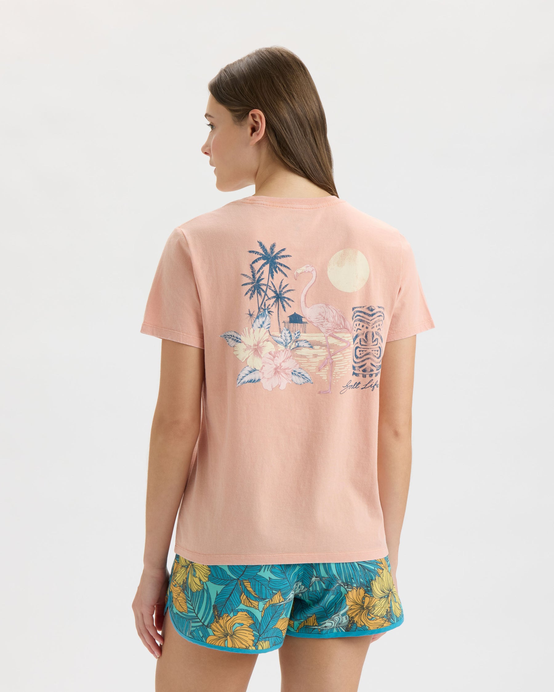 Soak up laid-back coastal vibes in the Salt Life Women’s Flamingo Boyfriend Tee. Crafted from soft cotton 30’s ringspun jersey with a relaxed boyfriend fit and crew neck, it keeps you effortless and breezy, while a back Flamingo graphic adds easygoing, beach-ready style.